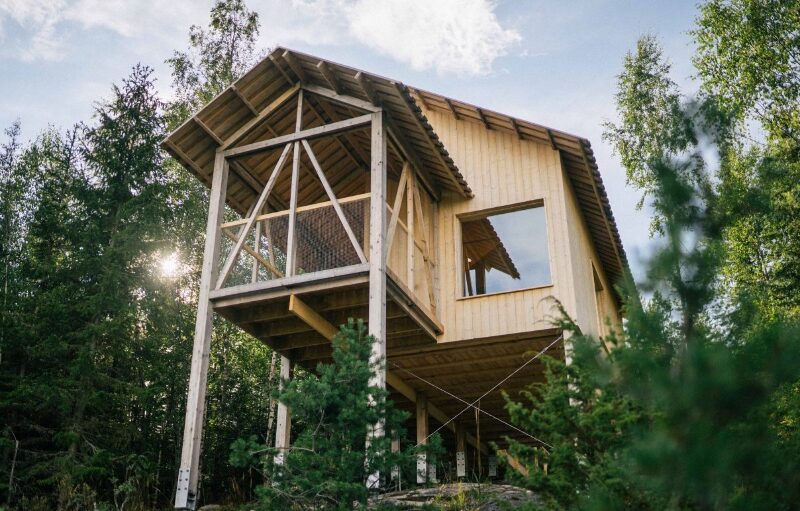 The former ski slope was covered by a tender birch grove. With a view for miles of the Ljusnan River Valley, a feeling appeared that this was something more than just an estate forestry. This was a place where the closeness of the mountain forest worked in perfect balance with the cool tranquility of the wide-open spaces. The daughters encouraged and drew a sketch of the landscape hotel – a hotel to blend in with the nature and highlight its natural beauty. Both houses are built on piles, the goal is four houses. The houses will be built apart from each other so you will get the feeling that you are all alone in the forest. A place of reflection and tranquility! You walk up the mountain to get the experience of infinity. Meekness – helps to create reflection, good standards, eternity. The family company, established almost 10 years ago has been called Bergaliv.